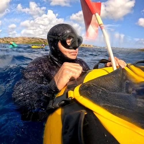 Overcome your fears and dive into the deep blue. Say yes to freediving with Danny! Say yes if you are an adventurist, a nature-lover, a proper team-player and specially say yes, if you have fear of the deep dark blue whole (who doesn't). Freediving is for everyone. It is fun, challenging and playful. You decide how far you want to take it (within the safety-boundaries of the sport). Freediving, if done properly, is very safe and freediving with the Free Diving Curacao school is extra extra safe. Danny makes sure you are challenged yet you always feel supported and guarded. The process of learning to dive on one breath is a proper training with breathing techniques, learning how to fin, lot's off practicing and theory. I loved every minute of it. On every dive I met new student-divers of Danny and we all supported and motivated each other. Your snorkel experiences and the way you feel under water will never be the same. Just try it out!
